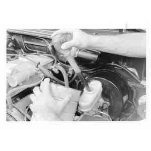 | Fig. 20: Using a brake caliper piston and compressor
