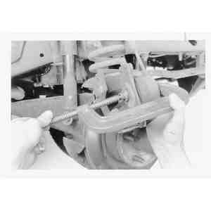 | Fig. 16: Use a C-clamp to slightly press in the caliper