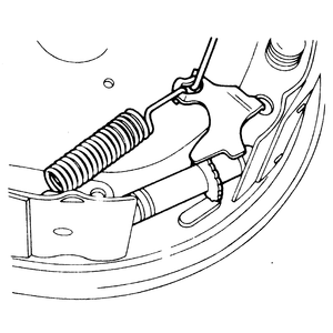 - Install the secondary shoe-to-anchor (long) spring. Be sure that the cable