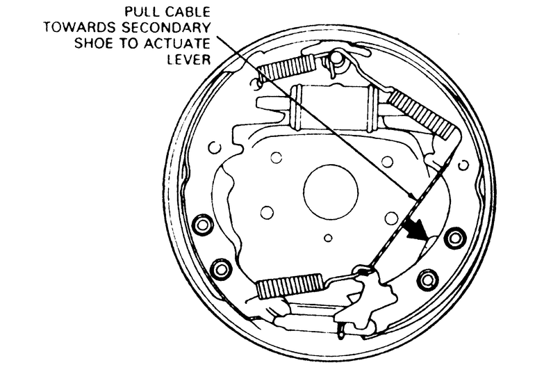- After removing the rear brake secondary shoe, disassemble the parking brake