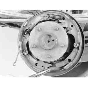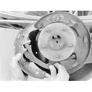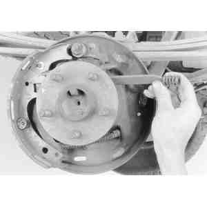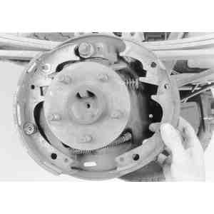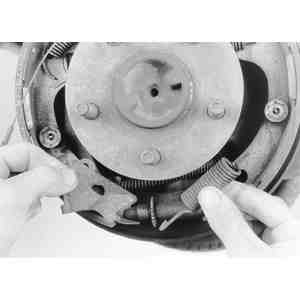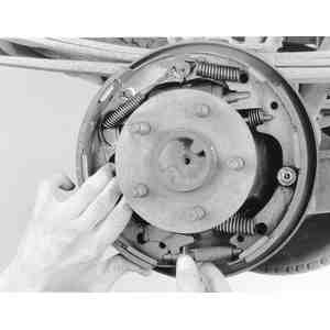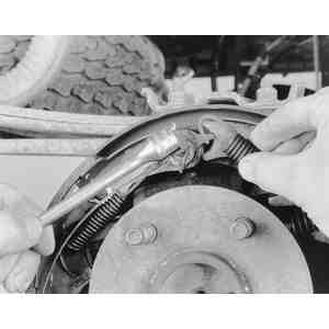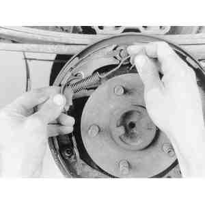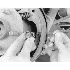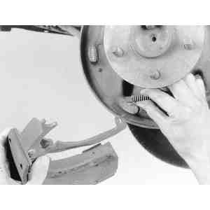 hold-down springs, reach behind the brake backing plate and place one finger