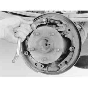 - Raise and support the vehicle and remove the wheel and brake drum from the