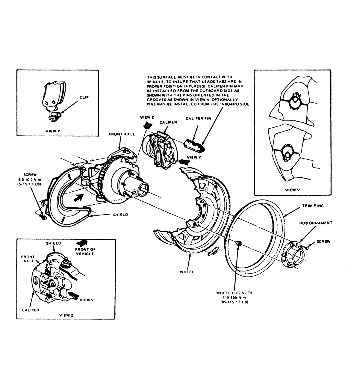 Fig. 3: Front disc brake assembly component locations