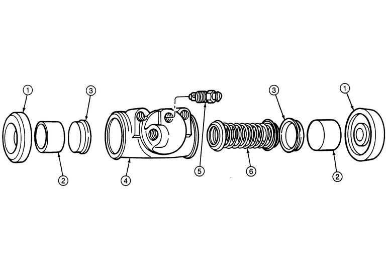 If no replacement is available, or you would prefer to overhaul your wheel cylinders, the following procedure may be used. When rebuilding and installing wheel cylinders, avoid getting any contaminants into the system. Always use clean, new, high quality brake fluid. If dirty or improper fluid has been used, it will be necessary to drain the entire system, flush the system with proper brake fluid, replace all rubber components, then refill and bleed the system.