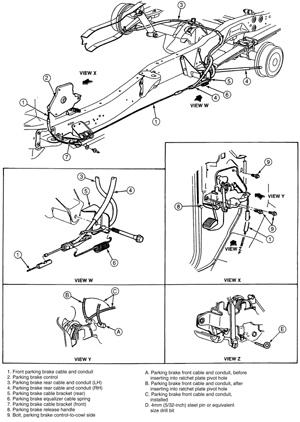 Relieve the parking brake cable tension as outlined under cable adjustments.