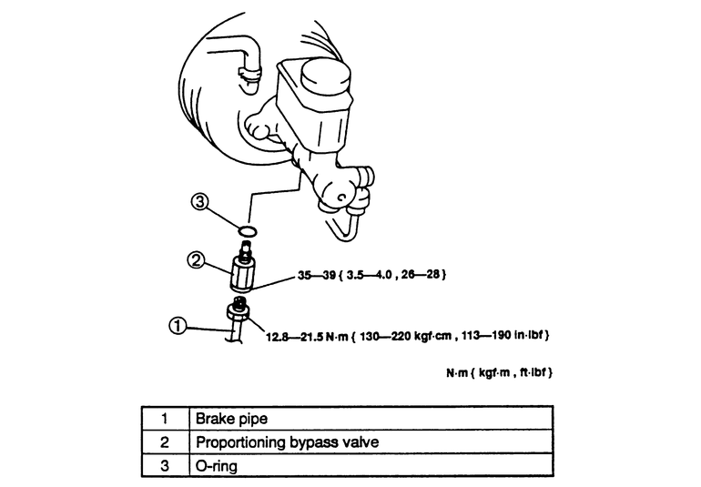 The proportioning valve on 1996–98 MPV models is located on the master