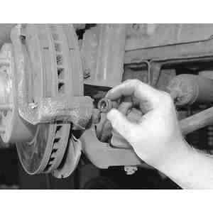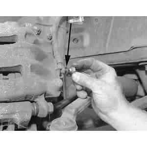 | Fig. 4: Before disconnecting the brake hose at the caliper,