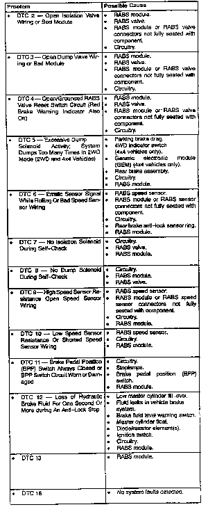 NOTE: All vehicles use the RABS II system. The major difference between the two systems is the addition of keep alive memory (codes are stored, even if ignition is turned off), and a code 16 can be set which means the system is operating properly.