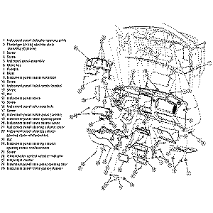 - Remove the 2 screw retaining the instrument panel to the parking brake bracket,