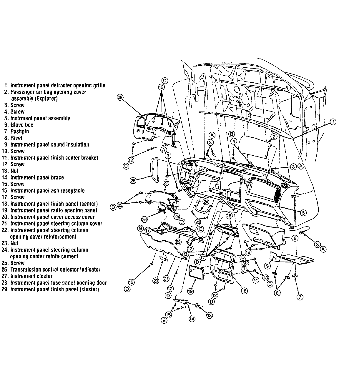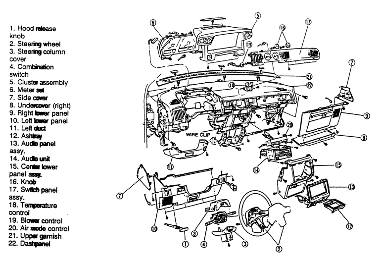 | Fig. 1: Exploded view of the 1994 instrument panel assembly