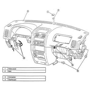 - Remove the mounting bolts from the top, side and lower center of the dashboard