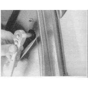 the door trim panel and peel back the padding to access the nuts (arrow)