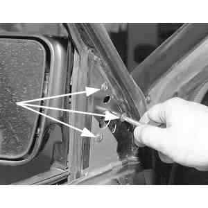 | Fig. 6: Remove the 3 sideview mirror mounting screws