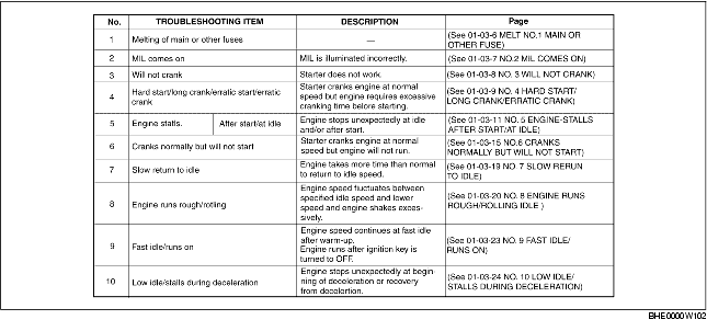 • The symptoms of the malfunctions are listed in the diagnostic index for symptom troubleshooting.