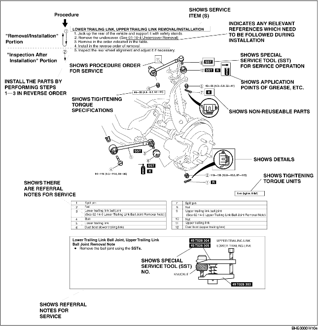• Simple operations which can be performed easily just by looking at the vehicle (i.e., removal/installation of parts, jacking, vehicle lifting, cleaning of parts, and visual inspection) have been omitted.