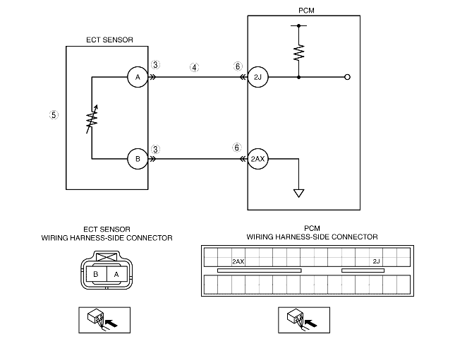 INSPECT ECT SENSOR SIGNAL CIRCUIT FOR SHORT TO GND