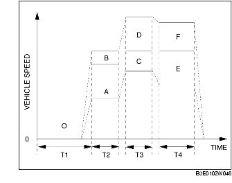 3. Drive the vehicle as shown in the graph; first drive in zone O, then A or B, followed by C or D, finally E or F. The driving condition before driving at constant speed is not specified.