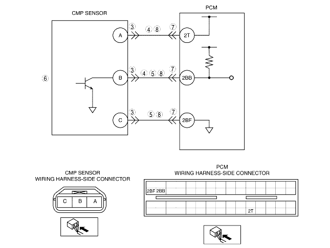 INSPECT CMP SENSOR CIRCUIT FOR OPEN CIRCUIT