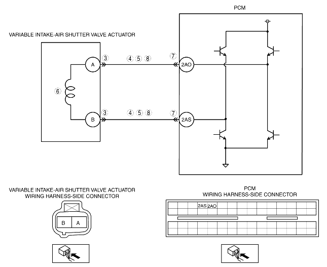 INSPECT VARIABLE INTAKE-AIR SHUTTER VALVE ACTUATOR CIRCUIT FOR SHORT TO GND