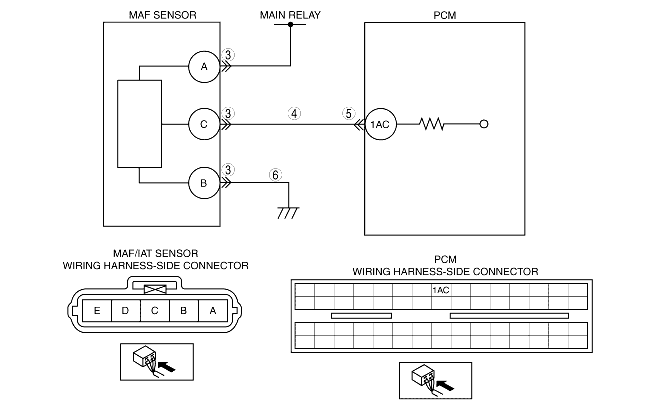 • Measure the voltage between MAF/IAT sensor terminal C (wiring harness-side) and body ground.