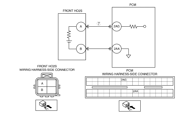 • Inspect the following harnesses for open circuit or short to ground, repair or replace wiring harness if necessary.