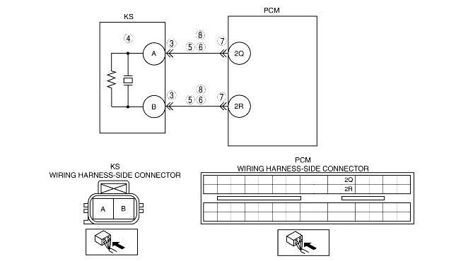 • Inspect for continuity between KS female terminals A and B (wiring harness-side).