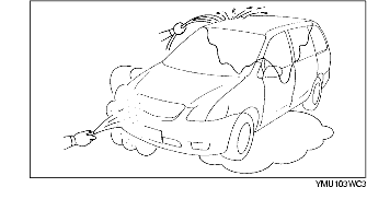 5. Spray water onto the vehicle or run it through a car wash.
