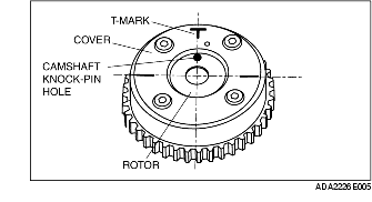 9. Verify that the camshaft knock pin hole of the variable valve timing actuator and the T- mark of the cover are aligned and fixed as shown in the figure.