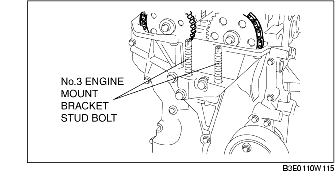 5. Tighten the No.3 engine mount bracket stud bolts.