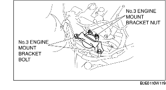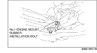 • Do not tighten the No.1 engine mount rubber installation bolt before tightening the No.3 engine mount rubber installation bolt. (See No.3 Engine Mount and No.4 Engine Mount Rubber Installation Note.)