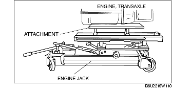 1. Secure the engine and the transaxle using an engine jack and attachment as shown in the figure.