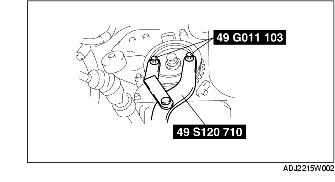 4. After installing the chain adjuster, remove the wire or the paper clip installed to the chain tensioner, and apply tension to the timing chain. (Remove the installed stopper when installing the new chain tensioner.)