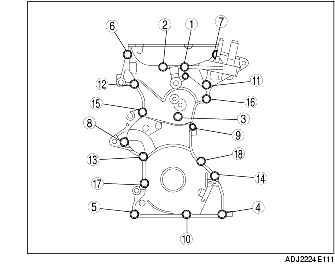 2. Tighten the engine front cover installation bolts in the order shown in the figure.