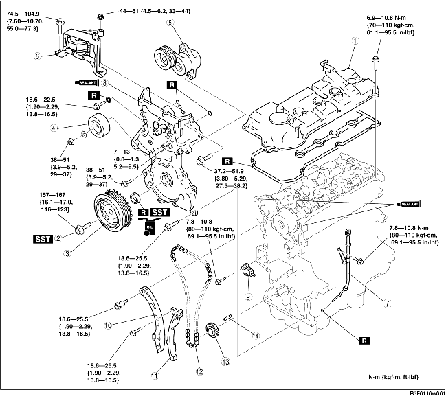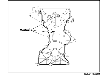 1. Apply the silicon sealant to the engine front cover as shown in the figure.