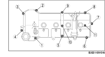 2. Tighten the cylinder head cover installation bolts in the order shown in the figure.