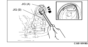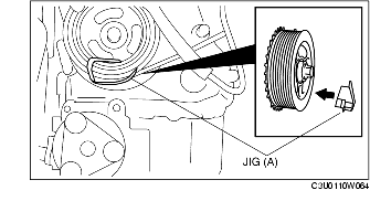 3. Install a jig (A) to the crankshaft pulley as shown in the figure.