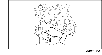 3. Use a square ruler to align the oil pan and the cylinder block junction side on the engine front cover side.