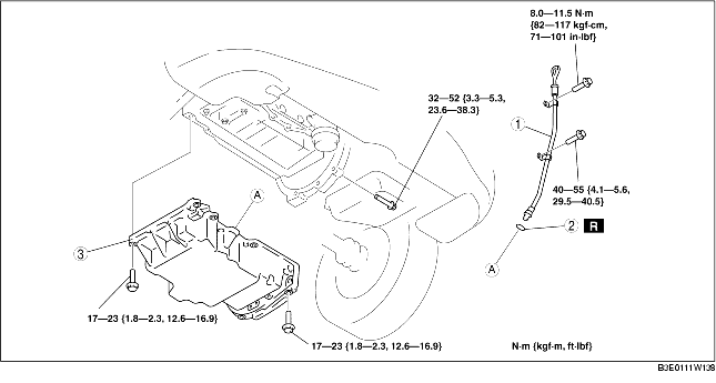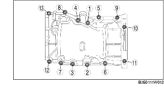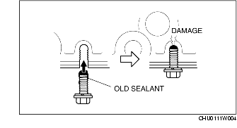 2. When reusing oil pan installation bolts, clean any old sealant from the bolts.
