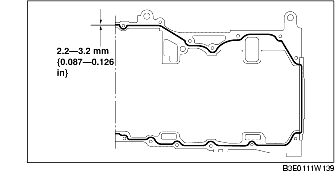 4. Apply silicone sealant to the oil pan along the inside of the bolt holes as shown in the figure.