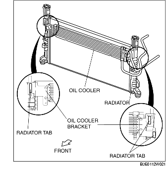 2. Install the oil cooler by inserting oil cooler bracket to the radiator tab on the radiator. (ATX)