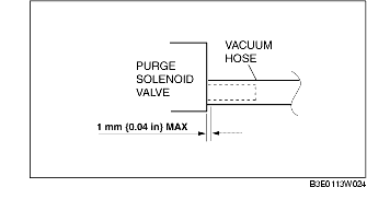 5. After measuring the intake manifold vacuum, install the vacuum hose to the purge solenoid valve as shown in the figure.