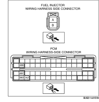 - Fuel injector No.1 terminal B and PCM terminal 2B
