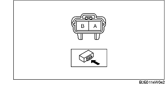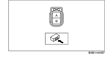 4. Inspect the resistance between fuel injector terminals A and B using a tester.