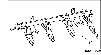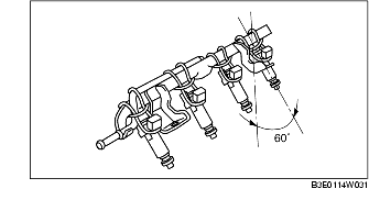 10. Tilt the fuel injector at an angle of 60° to inspect for leakage.
