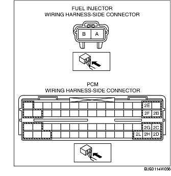 - Fuel injector No.1 terminal A and PCM terminal 2BB