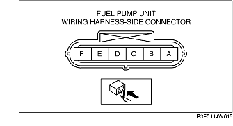 3. Inspect for continuity between fuel pump unit terminals A-E.