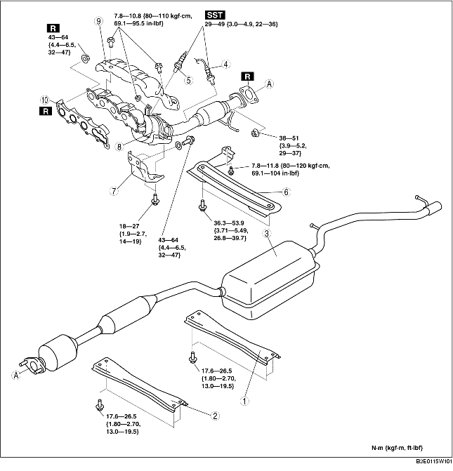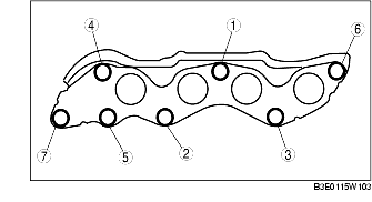 1. Tighten the exhaust manifold installation nuts in the order shown in the figure.