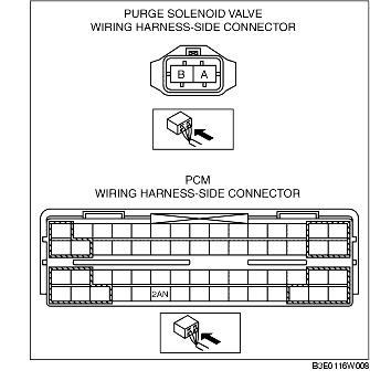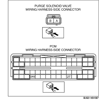 - Purge solenoid valve terminal B and PCM terminal 2AV
