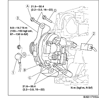 2. Securely tighten the generator installation bolts in the order A, B, C, and D.