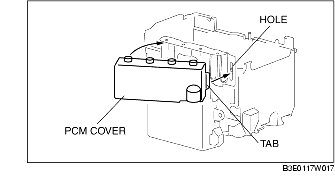 1. Insert the tab of the PCM cover to the hole.